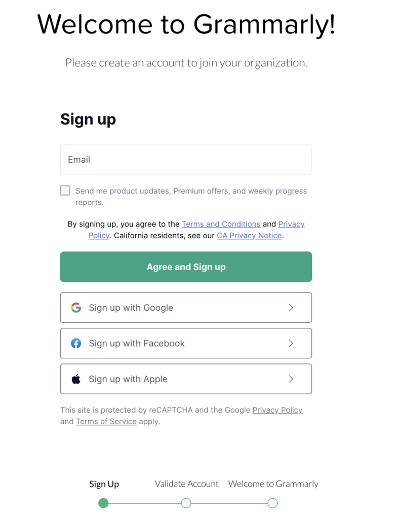 Setting up a Grammarly account is extremely easy: subscribe individually with your @staging.iadt.ie emails by clicking on the below image or this link